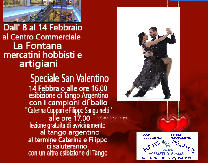 Sono aperte le prenotazioni dal 08/02/2016 al 14/02/2016 x esporre al centro commerciale la fontana di Cinisello Balsamo, possono partecipare hobbisti e artigiani. Per info e prenotazioni sa.do.hobbistiinpiazza@gmail.con